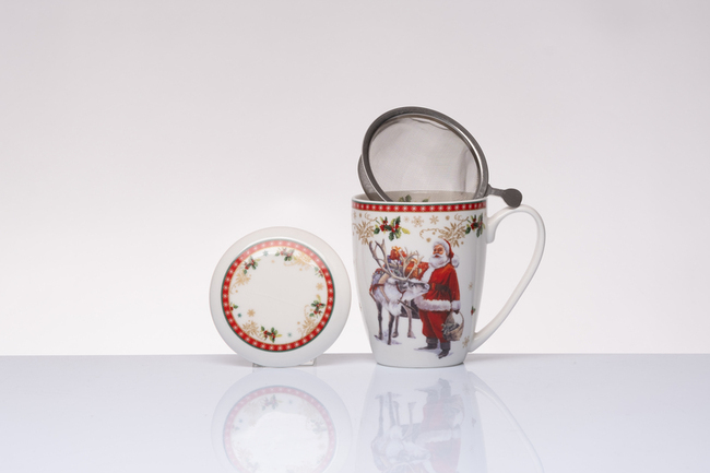 Una classica teiera natalizia per le fredde giornate invernali, con una capienza di 490 ml, accompagnata da una tazza da 320 ml